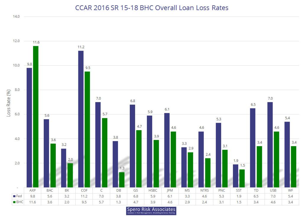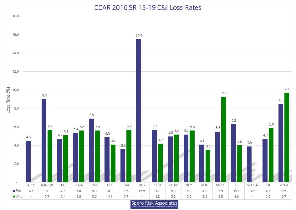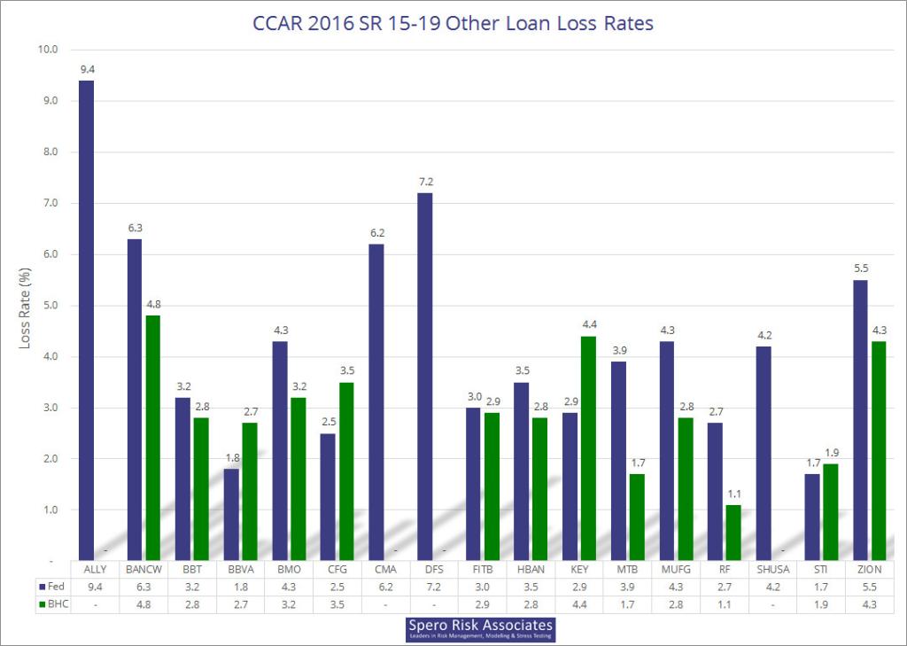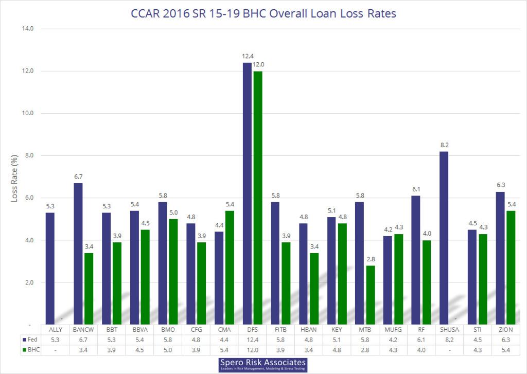 Please note that we used the adjusted rates for M&T, and as of July 19, company-disclosed losses for two 15-19 firms are missing: Ally’s and Santander’s. If you are interested in the raw data, an Excel file is available here: 2016 CCAR/DFAST Results Available in Excel.