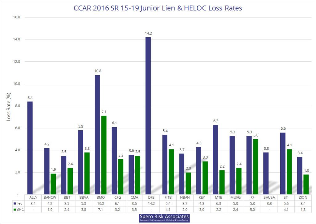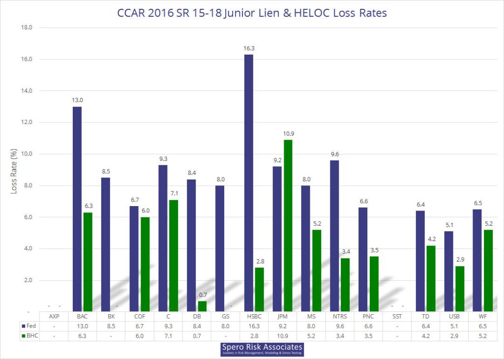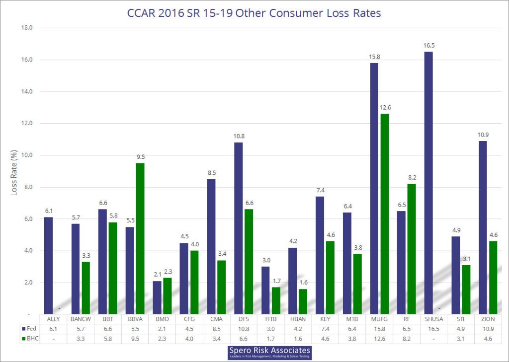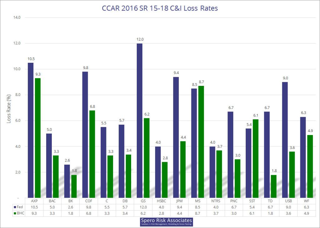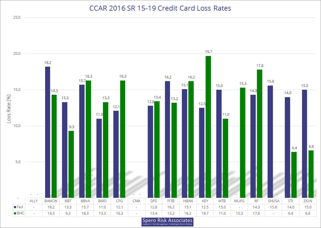 Please note that we used the adjusted rates for M&T, and as of July 19, company-disclosed losses for two 15-19 firms are missing: Ally’s and Santander’s. If you are interested in the raw data, an Excel file is available here: 2016 CCAR/DFAST Results Available in Excel.